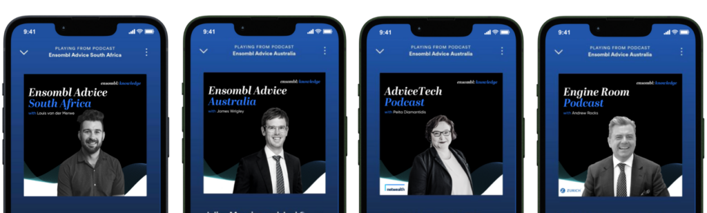 As well as the flagship Ensombl podcast, our current weekly podcast offerings also include more specialised podcasts, such as our Investments, AdviceTech, and Engine Room business growth series, as well as our thematic deep dives into specific topics.